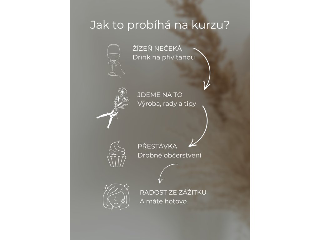 Komfortní a přátelské zázemí: Kurzy navštěvují ženy, jako jste vy. Baví je květiny, chtějí si odpočinout a odnést si radost, zážitek.